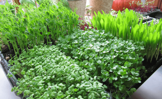 Gula ärtor, popcornmajs, solrosfrön (med skal) kan sås tätt i ca tre cm jord. Mindre fröer så som grönkål, ruccola, smörgåskrasse, amarant, salladssenap, chia mm kan sås ytligt på ett ännu tunnare jordlager. Håll fuktigt och ljust. Efter en till två veckor är det bara att klippa av med sax och lägga direkt på tallriken eller i salladsskålen.